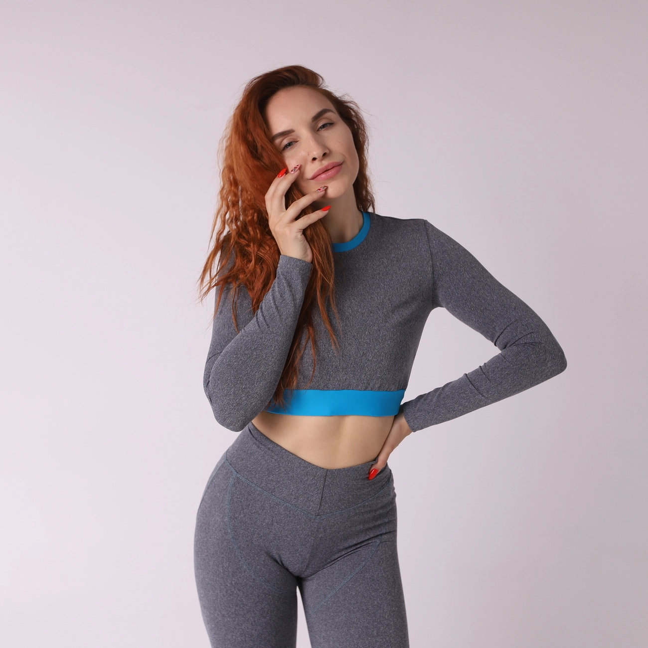 Класический серый дизайн с яркими голубыми вставками.