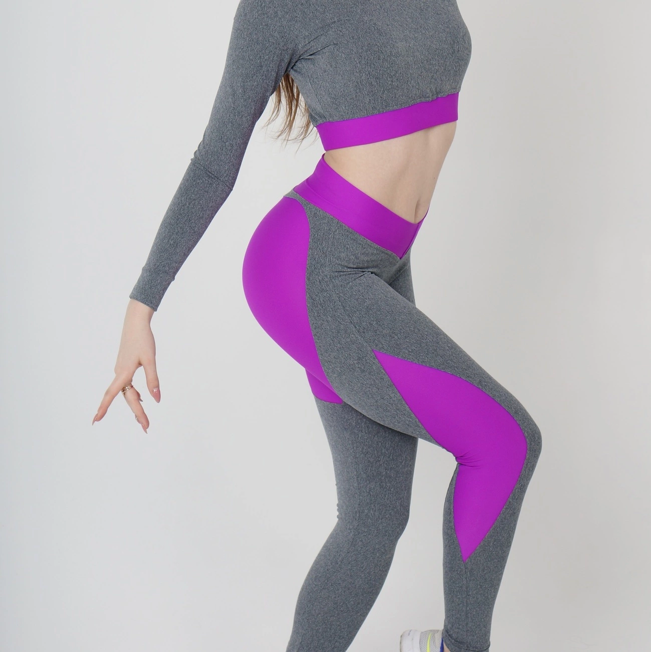 Серые спортивные леггинсы с фиолетовыми вставками несомненно подчеркнут ваши формы. Фиолетовый пояс, боковые вертикальные вставки, которые визуально удлиняют ваши ноги. Вставка сзади имеет пуш-ап еффект. Изготовлены из бифлекса (80% нейлон, 20% спандекс). Скрывают недостатки, удобная высокая посадка, отличная утяжка, не сковывают движения. При занятии спортом, вы будете чувствовать себя комфортно и уверенно, так как они не просвечиваются!
