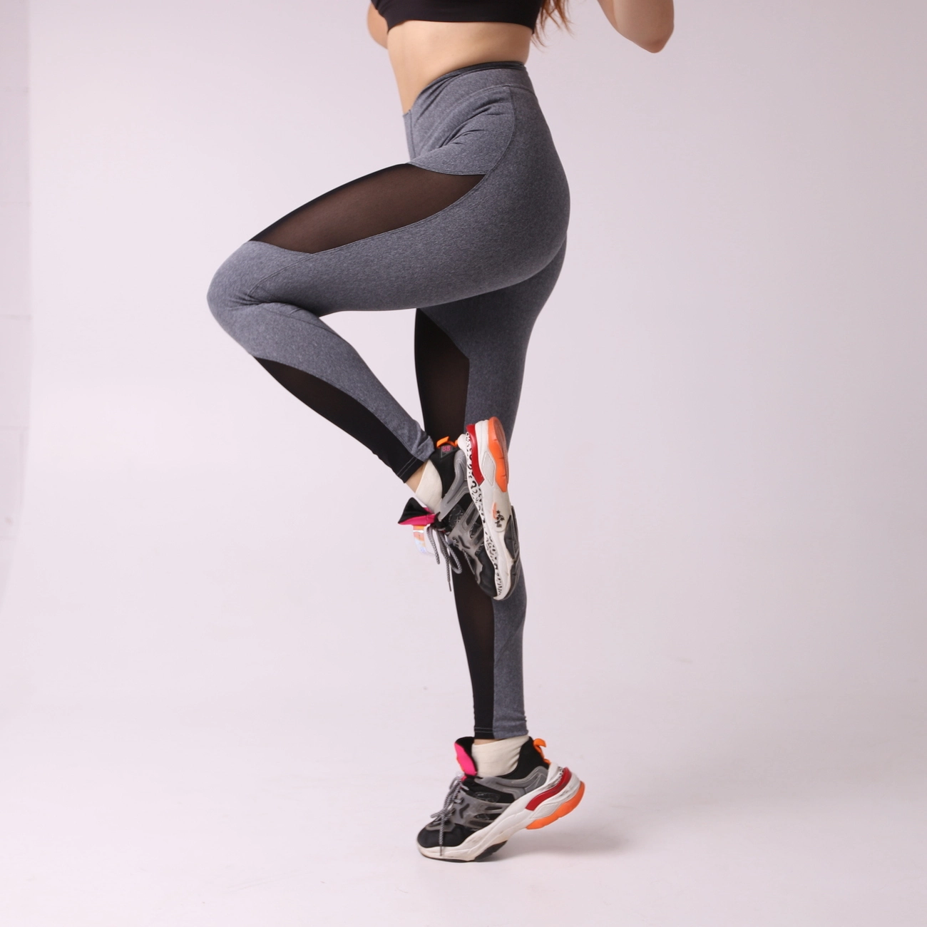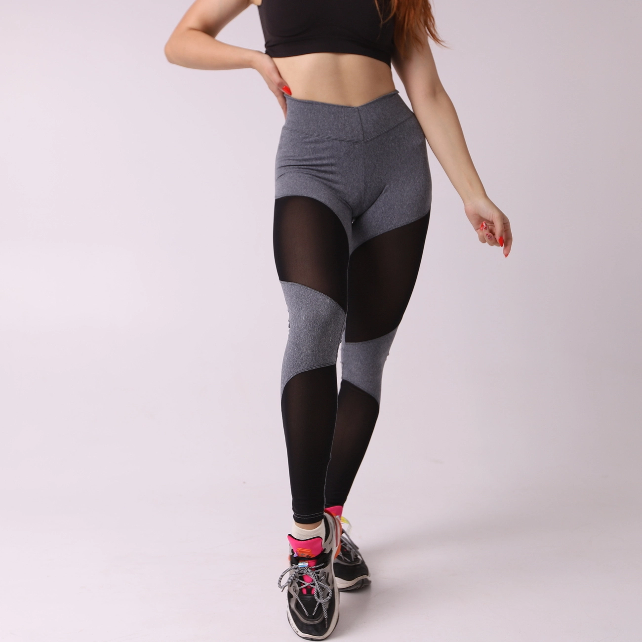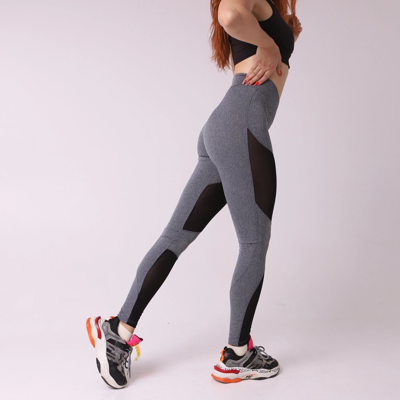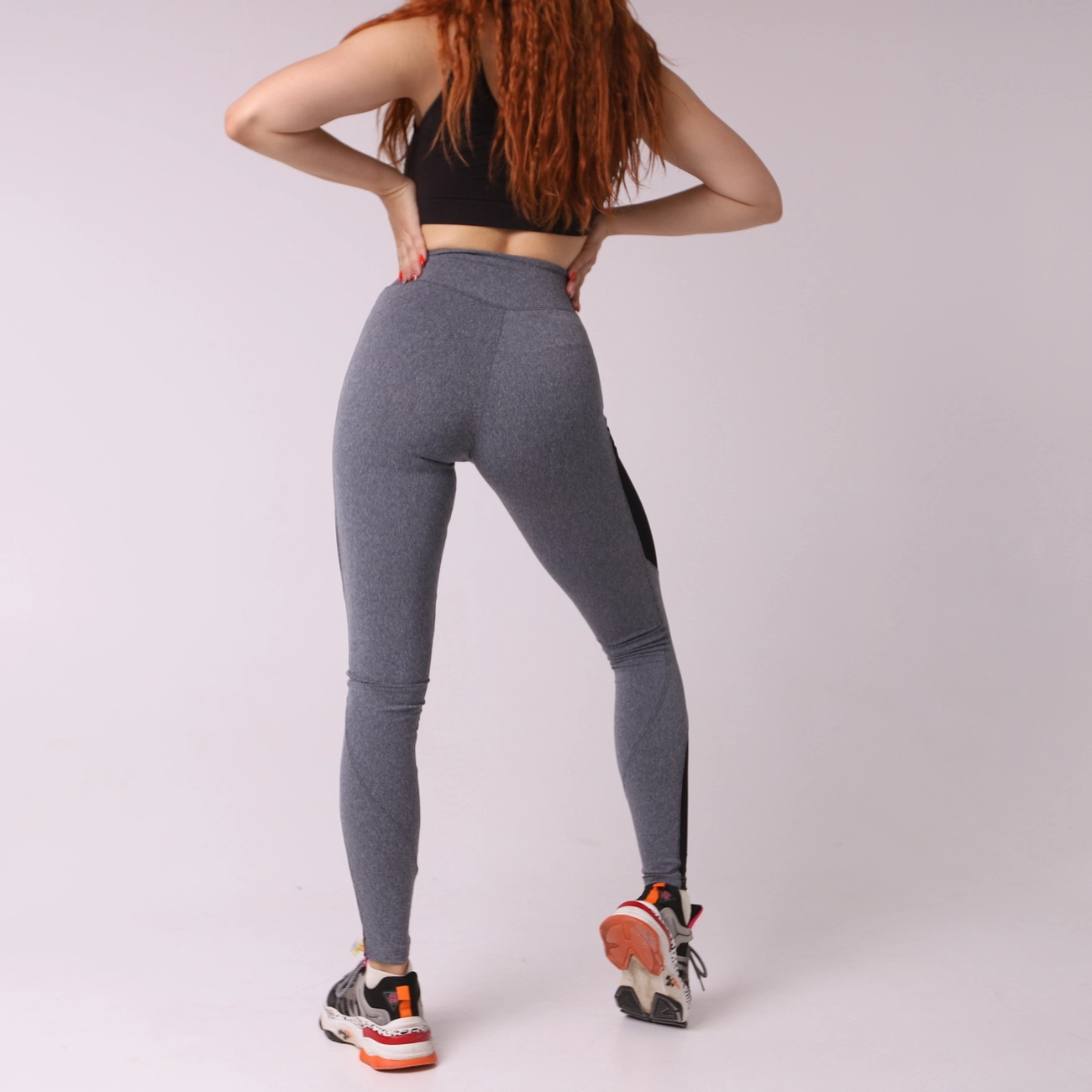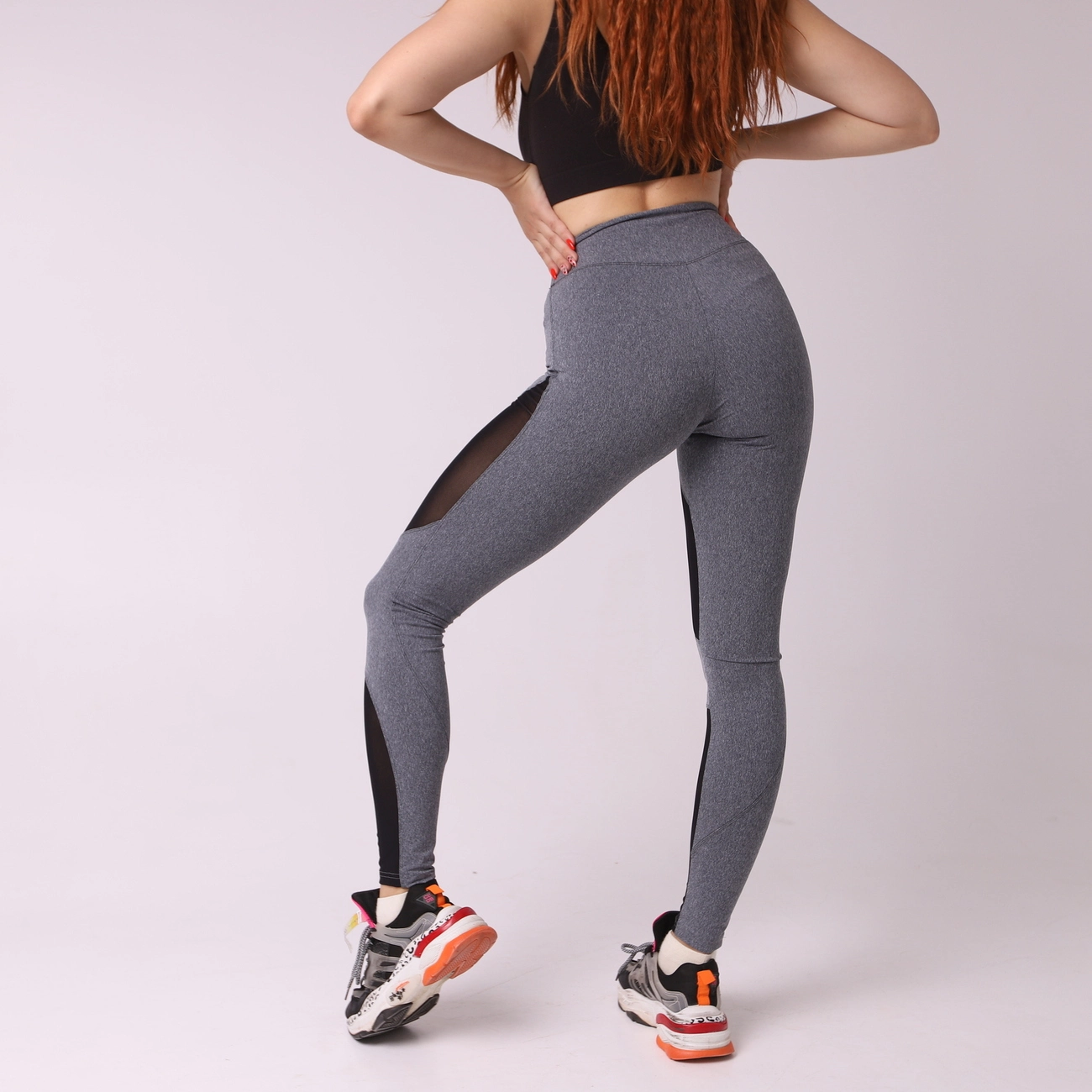 Серые спортивные леггинсы со вставками из сетки спереди. За счет этого вам будет комфортно заниматься даже в самую жаркую погоду.