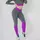 Серые спортивные леггинсы с яркими фиолетовыми вставками. Пояс также фиолетовый, что придает особую изюминку. Изготовлены из бифлекса (80% нейлон, 20% спандекс). Скрывают недостатки, удобная высокая посадка, отличная утяжка, не сковывают движения. При занятии спортом, вы будете чувствовать себя комфортно и уверенно, так как они не просвечиваются!